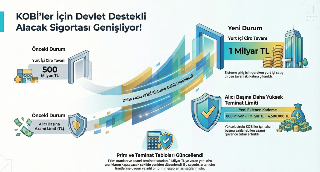 Bu değişiklikler, KOBİ’lerin yurt içi vadeli satışlarını daha büyük bir güvenle sürdürmelerine destek olmayı hedeflemektedir.